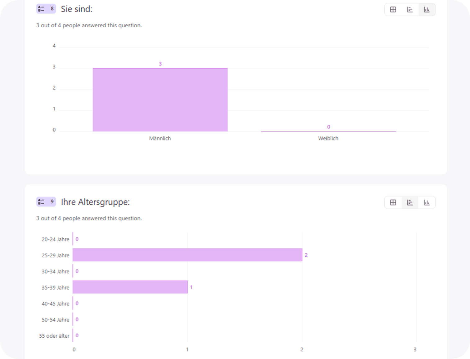 Dazu schicken wir den Firmen einen Link, der unter den Mitarbeitern verteilt wird. Dieser Link enthält einen Fragebogen, in dem Fragen gestellt werden zu: